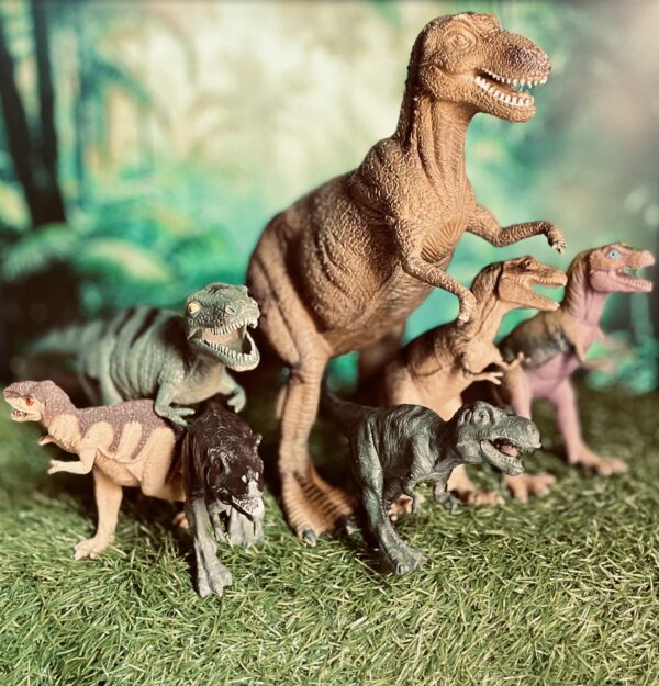 Exciting dinosaur toy set with 1 large T-Rex and 6 small T-Rex figures. Perfect for kids, collectors, and dino lovers.