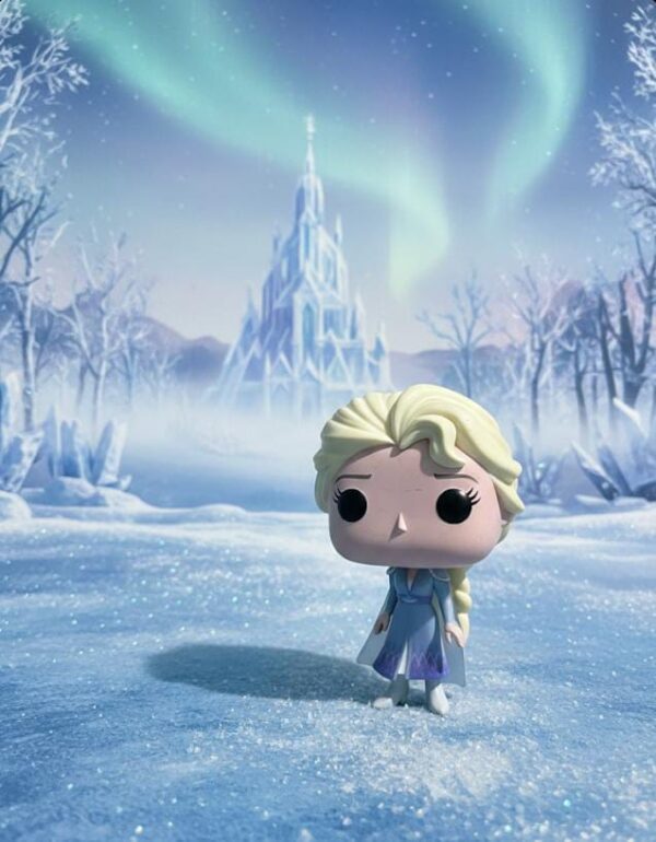Stylized Funko Pop! design capturing Elsa in her travel outfit