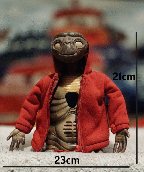 Carefully sculpted to resemble E.T. with soft, plush skin and a detailed face, blending Furby’s mechanical charm with E.T.’s extraterrestrial features.